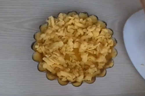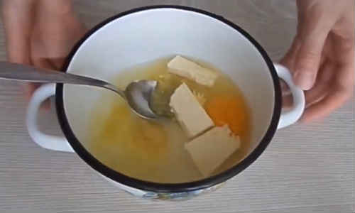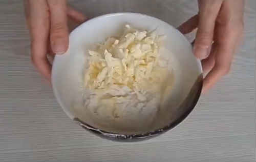 Натріть на крупній тертці масло, або просто дуже дрібно порубаєте ножем. Щоб шматок легше натирався, заморозьте його, недовго потримавши в морозилці. Якщо збираєтеся працювати ножем, навпаки, розімніть при кімнатній температурі. Натерте масло трохи розберіть руками в крихту (воно може злипнутися).