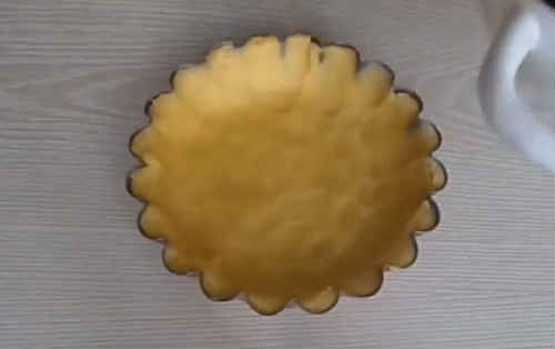 Основну частину тіста викладіть у форму, сформуйте невеликі бортики.