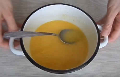 Поставте на плиту. Доведіть до закипання, але кипіти не давайте. Зніміть крем з конфорки, охолодіть.