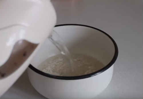 Першим ділом засипте в каструльку крупу, залийте водою. Зваріть рис до напівготовності. Коли рис буде готовий, відкиньте його, залишіть, хай повністю стече рідина, це важливо.
