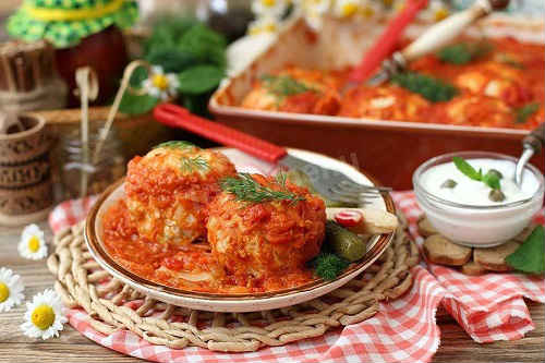 Ліниві голубці в духовці — рецепт в томатно-сметанному соусі з фото покроково
