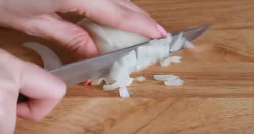 Покришіть цибулю. Його також необхідно зробити максимально дрібним. В голубцях він не повинен бути помітним.