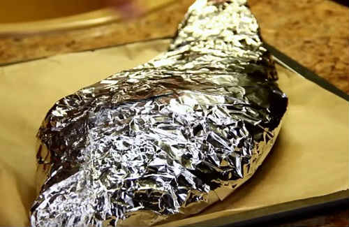 Оберніть тушку риби фольгою, щоб не залишилося дірочок.