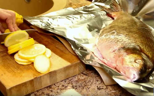 Популярний спосіб запікання будь-якої риби. Не лякайтеся, лящ не пересолится, оскільки буде захищений лускою.