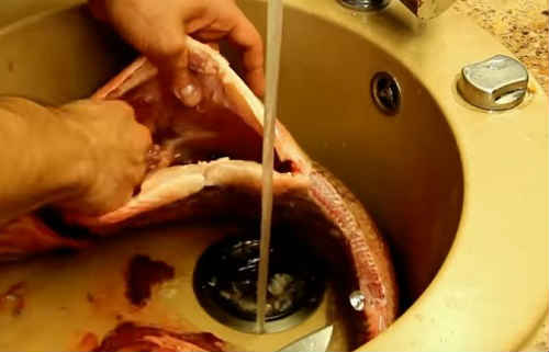 Обережно видаліть нутрощі, щоб не пошкодити жовчний міхур у риби. Він заллє гіркотою черевце, і страва буде зіпсовано.