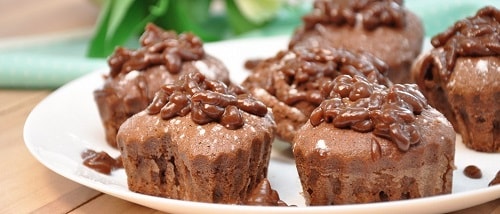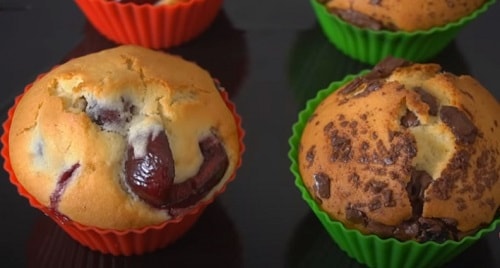 Найчастіше господині печуть мафіни з шоколадом. Щоб тісто стало темним, вмішують какао, а начинку або прикраса роблять з шоколадки.