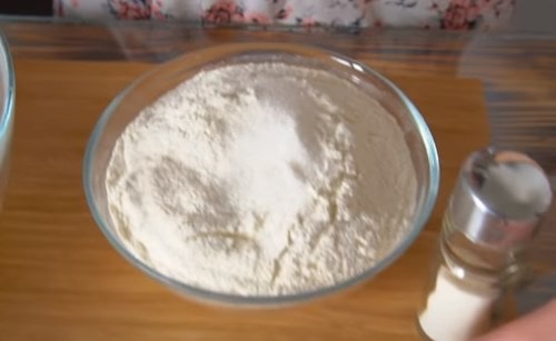 - Просійте борошняний продукт, перемішайте з содою і розпушувачем.