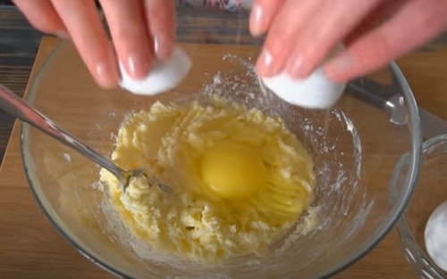 - Розбийте по одному яйця, продовжуючи перемішувати.