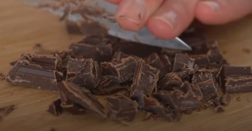 - Роздрібніть у велику крихту одну шоколадку, додайте в масу, зробіть заміс. На даному етапі можна додати горіхи, якщо захочеться.