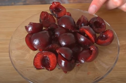 - Відстрочені вишеньки поріжте і розкидайте поверху.