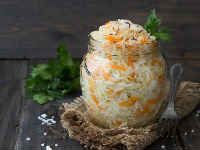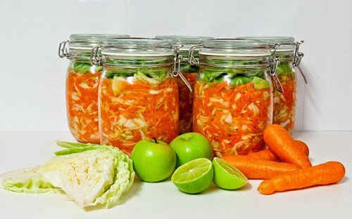 - Морква і часник – постійні гості в закусці, без них не добитися необхідного смаку і гостроти. Іноді додають цибулю. Крім цього, кладуть яблука, журавлину, болгарський перець, виноград, буряк, брусницю.