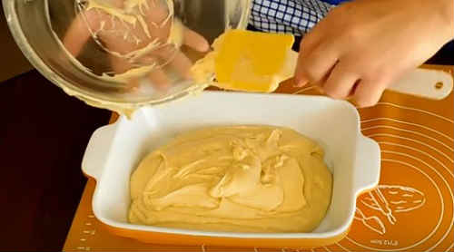 - Перелийте тісто у форму, застелену промасленим пекарської папером.