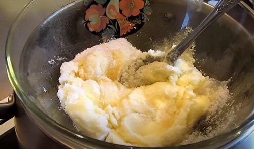 - Додайте заздалегідь розм’якшене масло (дістаньте з холодильника за півгодини до випічки). Гарненько розітріть масу.