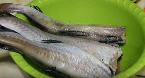 - Обробіть розморожені тушки риби, промийте, просушіть. Наріжте порційними шматочками.