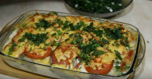 Як приготувати минтай шматочками з сиром і помідорами (покроково)