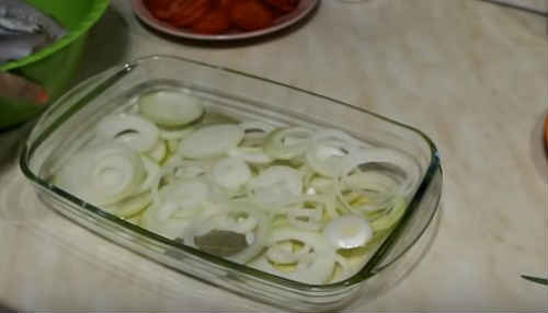 Прекрасне блюдо, ніжне, з вершковим смаком. не дивуйтеся, що лука у складі рецепту забагато, він додасть рибі необхідну соковитість.