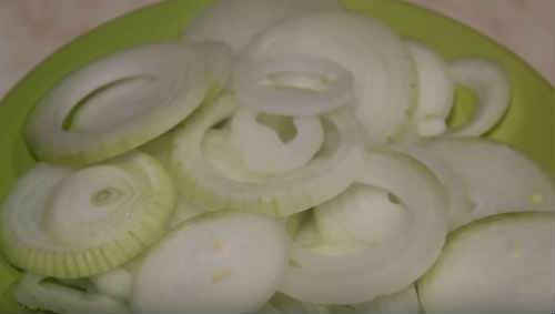 - Змастіть вершковим маслом форму, зробіть подушку з лука.