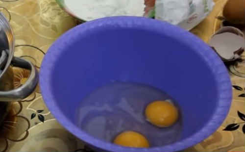 - Окремо зробіть тісто. З’єднайте в мисці яйця, майонез. Сумлінно збийте до однорідності. Засипте перераховані в рецепті приправи, присолите масу.