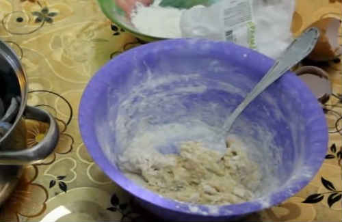 - Додайте всі вибрані приправи, посоліть, засипте борошно в кілька підходів. Розмішайте вміст до однорідного стану.