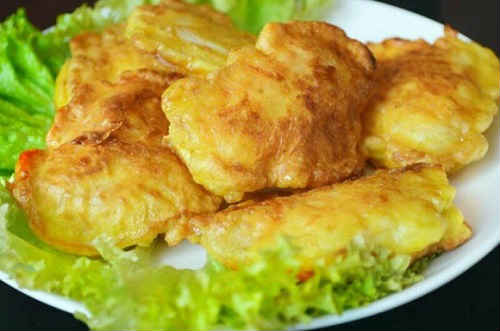 - Далі дійте звичайним способом: посмажте, вмочивши в тісто, в обох сторін.