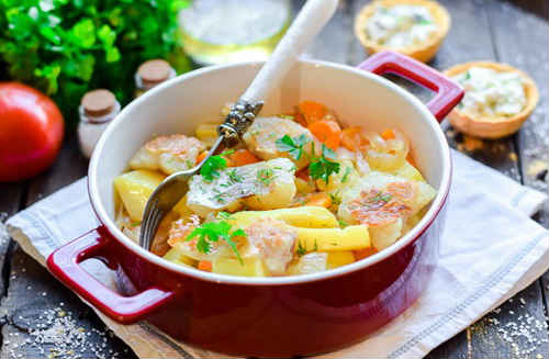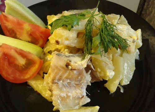 Минтай зі сметаною і картоплею