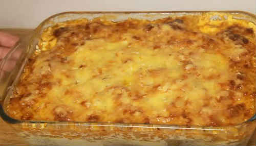 Поставте в духовку на середній рівень. Температура в печі – 180 про С. Час запікання 40 хвилин. ось така запіканка у вас вийде – красиво підрум’янена і приголомшливо смачна.