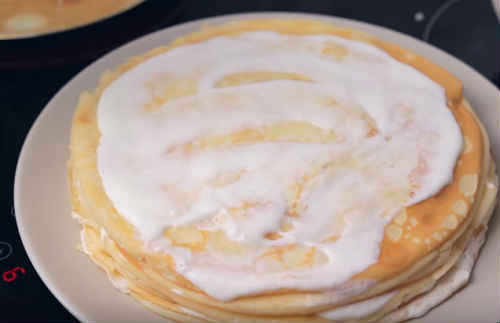 Простий варіант млинцевого задоволення, з легким кремом зі сметани. Дуже ніжний, з легкою кислинкою, буквально тане в роті.