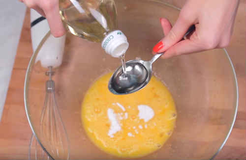 Влийте масло, посоліть, закиньте ванілін. Знову попрацюйте міксером.