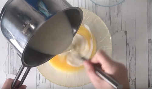 Залийте до яєць молоко, знову попрацюйте міксером.