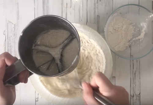 Невеликими дозами закладайте борошно. Вимішуйте, поки не позбудетеся від грудочок – це обов’язкова умова смачних млинців.