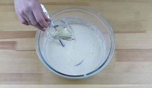Додайте рослинне масло, ще раз старанно перемішайте суміш.