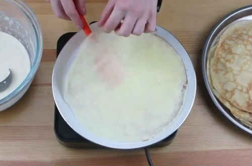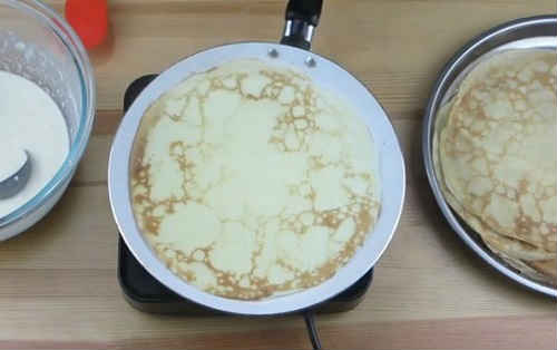 - Напечіть млинці, як розказано в покроковому рецепті вище.