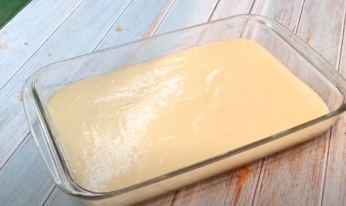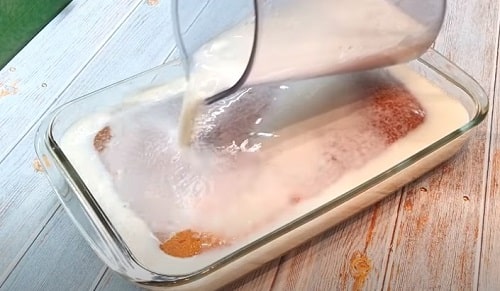 - Залийте гарячий десерт не встигла охолонути молочної просоченням. Залиште на столі, щоб сироп повністю вбрався, а тісто стало мокрим.