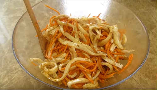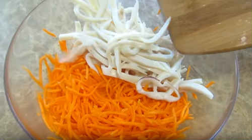Морква по-корейськи з кальмарами – рецепт салату