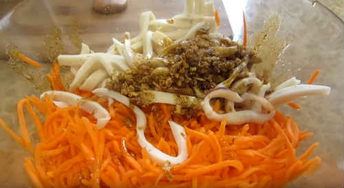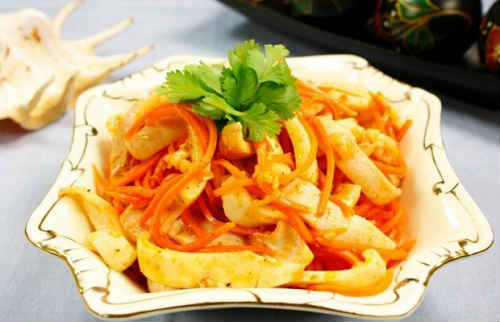 Рецепт корейського салату з морквою і кальмарами