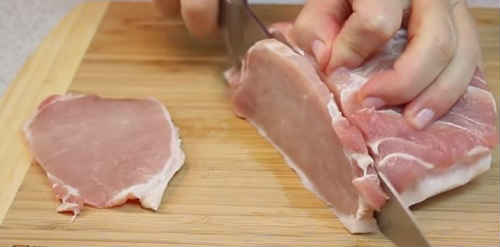 Корейку наріжте на відбивні середньої товщини 5-7 мм, буде достатньо.