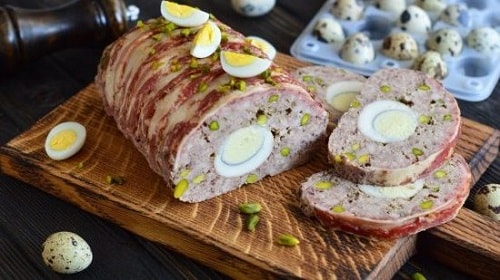 Рулет із курячого фаршу з перепелиними яйцями