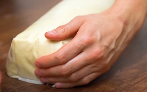 Загорніть заготівлю плівку, закрутіть краю. Покладіть на полицю холодильника рівно на годину, нехай заготівля застигне.