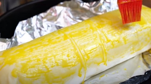 - Щоб утворилася рум’яна кірочка, за чверть години до закінчення, розгорніть фольгу і пергамент.