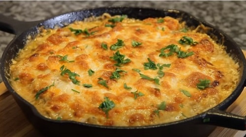 - Потріть крупною стружкою сир, посипте блюдо. Надішліть на запікання в духовку, розігріту до 180 о С. Час приготування 20-25 хвилин.