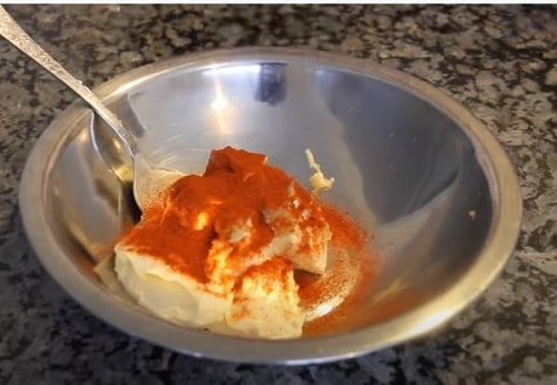 Перемішайте, додайте роздавлений пресом часник, мелений перець і паприку. Знову перемішайте соус.