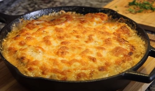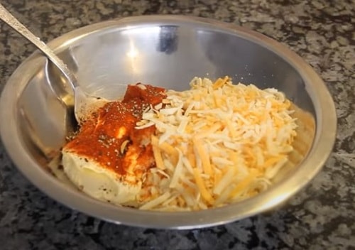 Натріть сир крупною стружкою, половину відправте в соус (решта поки відкладіть для посипання страви. Розітріть масу.