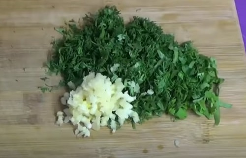 - Зелень за смаком, прованські трави або хмелі-сунелі, перець, сіль, масло.