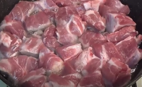 - Наріжте вирізку шматочками. Киньте смажитися на сковороду, зробивши вогонь по максимуму.