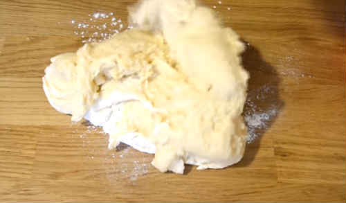 Потім перемістіть заміс на робочу поверхню і продовжуйте працювати руками. Для зручності, змочіть руки олією, так ви зайвої муки не додасте і вимісіть як треба.
