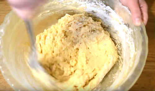 Спочатку перемішуючи ложкою, потім попрацюйте руками, вимішуючи прямо в мисці. Тісто буде липнути, дуже м’яким.