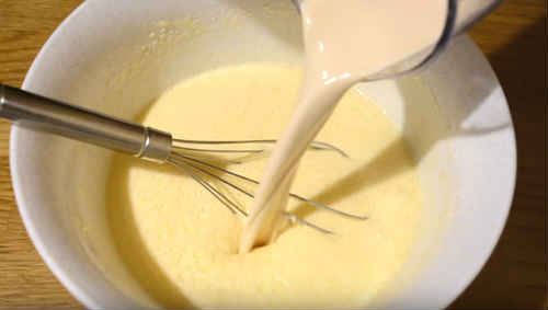 Слідом залийте розтоплене масло. Розмішайте віночком.