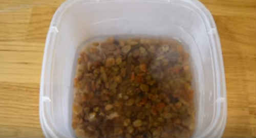 Перед замешиванием запарте окропом ізюм. Залийте його на 15-20 хвилин. Обов’язково просушіть ягідки.