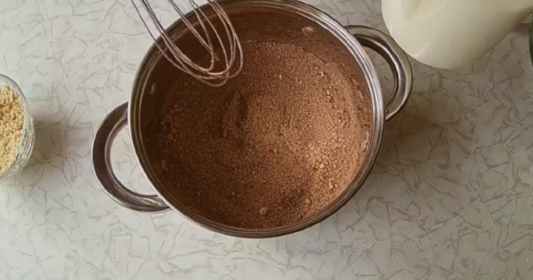 1. В ковшике з товстим дном змішати всі сухі складові.