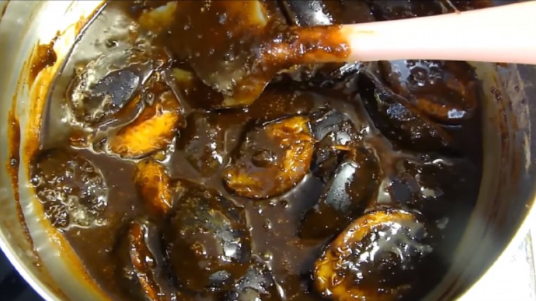 2. Поставити каструлю на середній вогонь і варити чверть години. За цей час плоди розм’якшаться, дадуть сік, цукор і какао розійдуться. Необхідно постійно помішувати джем, інакше сухі продукти пригорять.